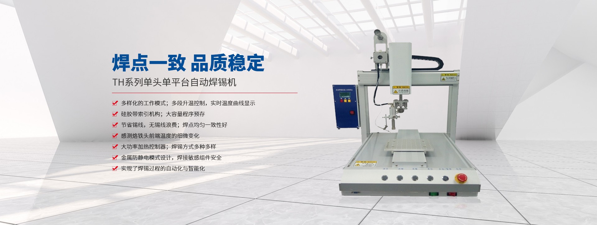 蘇州拓航機(jī)械設(shè)備有限公司成立于2016年,是一家集研發(fā)、制造、銷售及技術(shù)服務(wù)于一體的自動(dòng)化設(shè)備生產(chǎn)廠家,主營產(chǎn)品有自動(dòng)螺絲機(jī)、自動(dòng)焊錫機(jī)、自動(dòng)點(diǎn)膠機(jī)、自動(dòng)灌膠機(jī) 脈沖熱壓機(jī),及各類型的非標(biāo)自動(dòng)化設(shè)備。